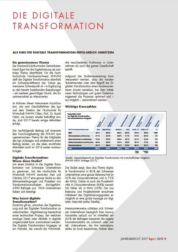 Der Kantonal-Solothurnischer Gewerbeverband veröffentlichte in seinem Jahresbericht eine Zusammenfassung der Forschungsresultate und Handlungsfelder der Digitalen Transformation.