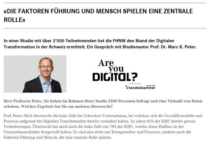 In einer Studie mit über 2’500 Teilnehmenden hat die FHNW den Stand der Digitalen Transformation in der Schweiz ermittelt. Ein Gespräch mit Studienautor Prof. Dr. Marc K. Peter.