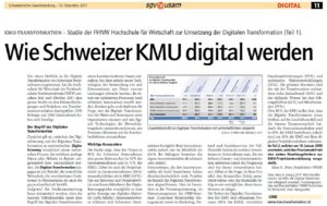 Die Studie der FHNW Hochschule für Wirtschaft zur Umsetzung der Digitalen Transformation (Teil 1) in der Gewerbezeitung vom 15.12.2017: Der Begriff der Digitalen Transformation und wichtige Kennzahlen.